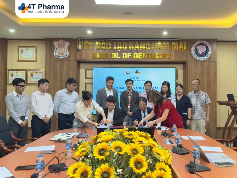 Lễ ký kết thoả thuận hợp tác 25/08/2025 giữa Viện Đào tạo Răng Hàm Mặt – Trường Đại học Y Hà Nội và Công ty Cổ phần Dược phẩm 4T Pharma đã diễn ra trang trọng, đánh dấu bước phát triển mới trong hợp tác đào tạo – nghiên cứu – chuyển giao công nghệ trong lĩnh vực Răng Hàm Mặt.