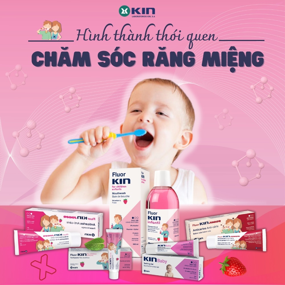 Sản phẩm chăm sóc răng miệng Fluor Kin Infantil dùng vệ sinh răng miệng, làm sạch răng, sạch mảng bám, thơm miệng, ngăn ngừa sâu răng, giúp răng chắc khỏe và bảo vệ men răng. Sản phẩm dành cho từng giai đoạn mọc răng của trẻ em, cung cấp các thành phần cần thiết để vệ sinh răng miệng và bảo vệ sâu răng tối ưu. Sử dụng cho trẻ trên 5 tuổi.