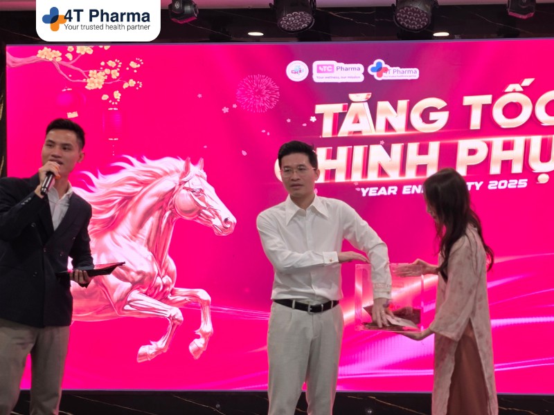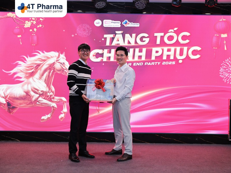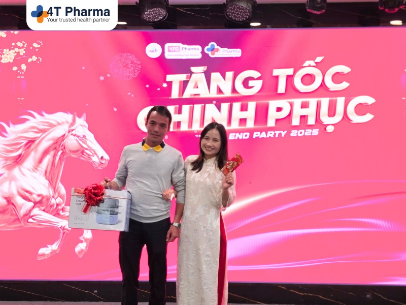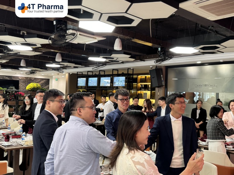 Trưa ngày 03/02/2026, ông Nguyễn Vũ Lam - Giám đốc 4T Pharma cùng toàn thể cán bộ nhân viên, đã có mặt tại Khách sạn Vườn Thủ Đô (04 P. Hoàng Ngọc Quách, Đống Đa, Hà Nội) để hân hoan tham dự sự kiện Year End Party 2025. Nằm trong khuôn khổ lễ tất niên chung của hệ thống, buổi tiệc là cơ hội tuyệt vời để tập thể 4T Pharma nhìn lại một năm cống hiến hết mình, đồng thời nạp đầy năng lượng cho hành trình bứt phá mang tên "Tăng tốc chinh phục" trong năm 2026.